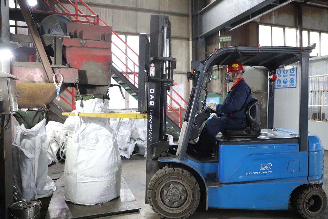 ▲作業(yè)人員對(duì)金精砂進(jìn)行鏟裝吊運(yùn)▲