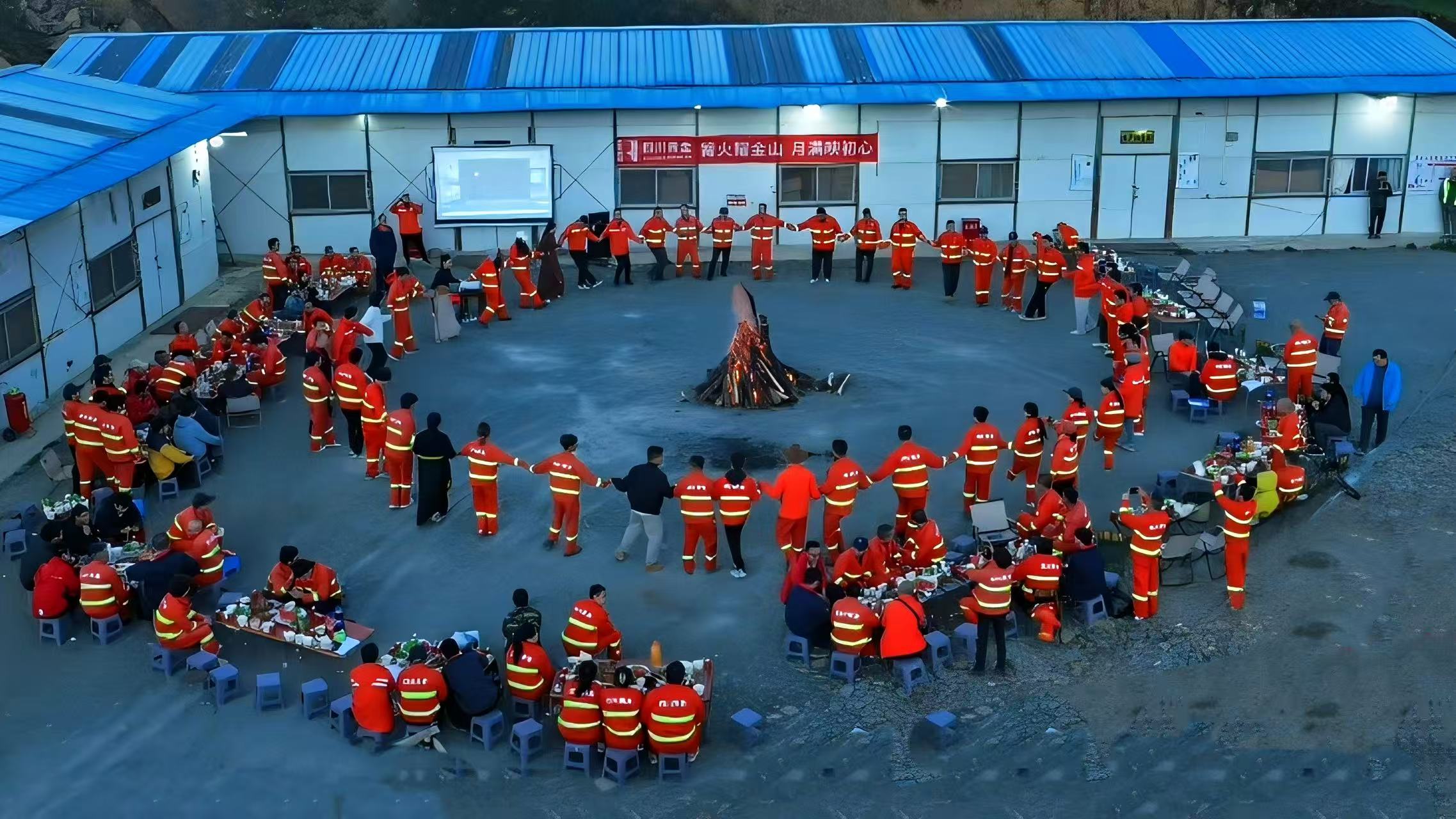 晚會伊始公司副總經(jīng)理、總工程師劉立輝,梭羅溝金礦礦長彭剛先后向堅守在一線崗位、辛勤勞作的全體員工致以誠摯的敬意和節(jié)日的問候,對他們?yōu)楣景l(fā)展所作出的貢獻予以充分肯定,就做好企業(yè)和個人安全工作作了溫馨提示。 在隨后的篝火晚會中,歌曲、舞蹈等節(jié)目接連上演,現(xiàn)場氣氛熱烈,掌聲不斷。“心有靈犀”互動游戲增進了團隊之間的默契與協(xié)作;“鍋莊舞”將大家團聚在一起,手拉著手歡快舞動,在一片歡聲笑語中展現(xiàn)出四川黃金人團結(jié)奮進、積極向上的精神風(fēng)貌。 此次晚會不僅是一次節(jié)日的歡慶,更是四川黃金系統(tǒng)構(gòu)建企業(yè)文化生態(tài)的一次生動實踐。在雪域高原的特殊工作環(huán)境下,公司積極統(tǒng)籌部署文化活動、精準(zhǔn)對接一線需求,將企業(yè)對員工的關(guān)懷從“物質(zhì)保障”延伸至“精神滋養(yǎng)”,力爭為四川黃金推進科技提質(zhì)、筑牢安全防線、實現(xiàn)高質(zhì)量發(fā)展注入源源不斷的溫情力量與奮進動能。