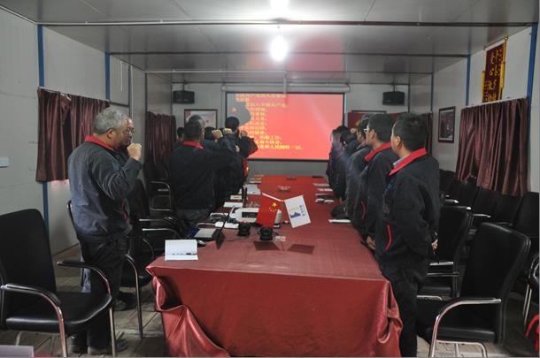 下午五時,活動在威嚴的“中華人民共和國國歌”聲中正式拉開序幕。全體黨員在赤血鮮紅的黨旗下重溫入黨誓詞,并和入黨積極分子一起觀看《我宣誓》視頻,以增強全體黨員干部的使命感、責任感。