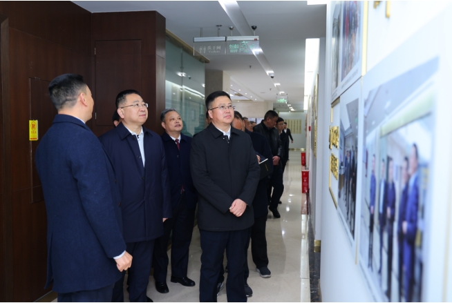 尹江濤一行參觀了解公司在基層黨建、企業(yè)文化及礦山運營等方面情況,并通過遠程實時監(jiān)控系統(tǒng)查看梭羅溝金礦生產(chǎn)工藝流程。